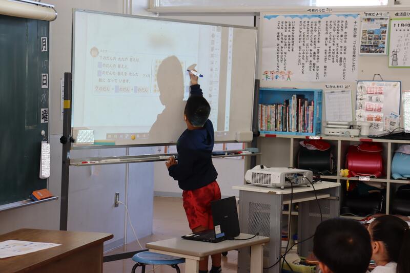 小学2年生はかけ算の学習をしていました。今日は7のだん。だんだんむずかしくなりますよー。がんばれ2年生!