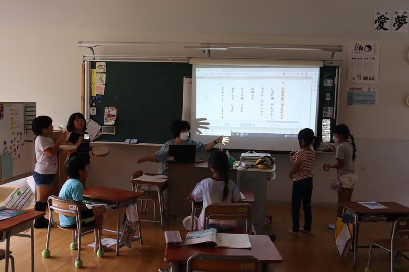 小学2年生は、国語で、「にゃーご」というお話の音読劇の練習をしていました。まだまだ始めたばかりですが、なかなか上手です。みんなノリノリです!エネルギーあふれる2年生、何をしても楽しそうです。