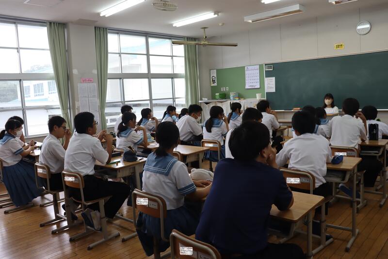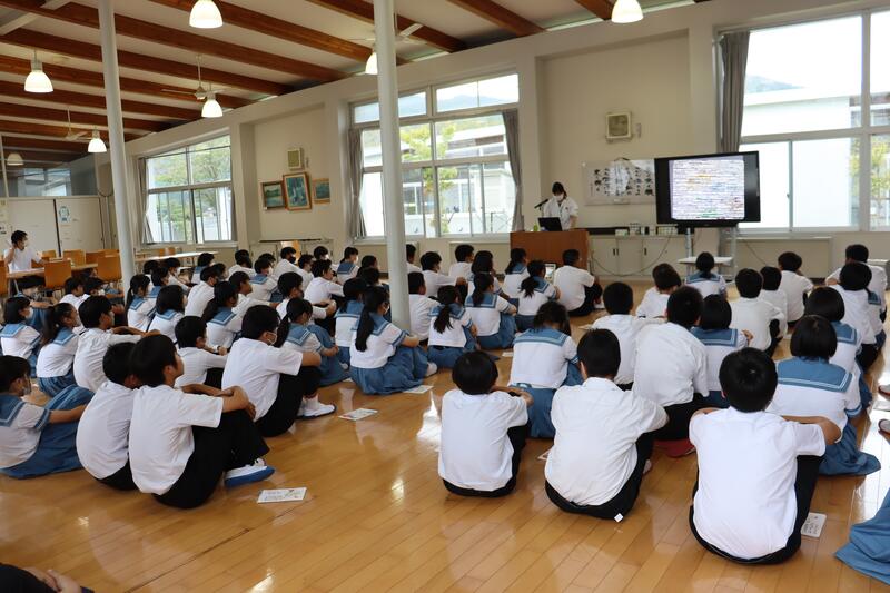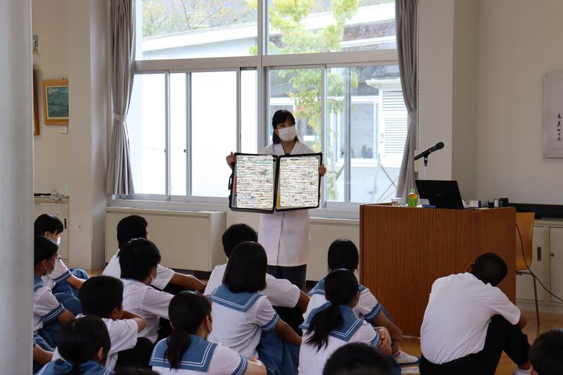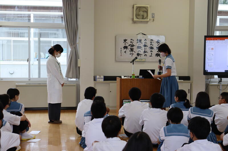 中学生は午後から「薬物乱用防止教室」がありました。学校薬剤師の先生のお越しいただき、講話をしていただきました。薬物乱用の恐ろしさ、薬を正しく使うことの大切さ、興味本位で使用しない、誘われてもはっきり断るなど、たくさんの学びがありました。