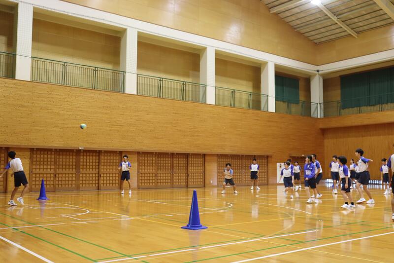 中学生の全校体育は、今日から3日間、体育委員会主催のドッジボール大会です。縦割り班対抗で優勝を狙います。朝から汗びっしょりです!