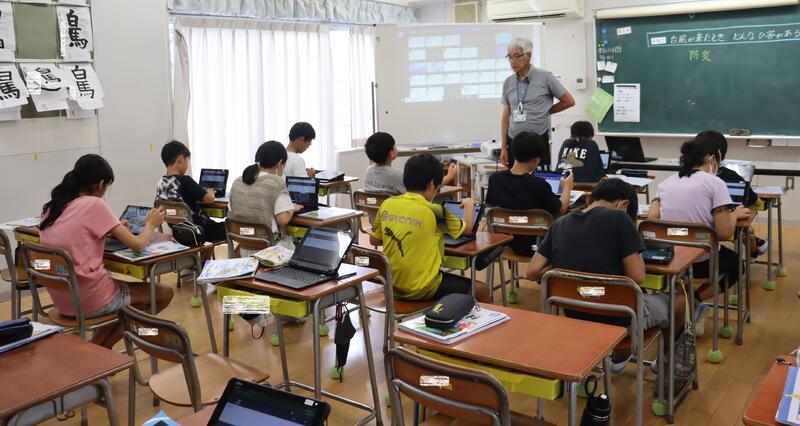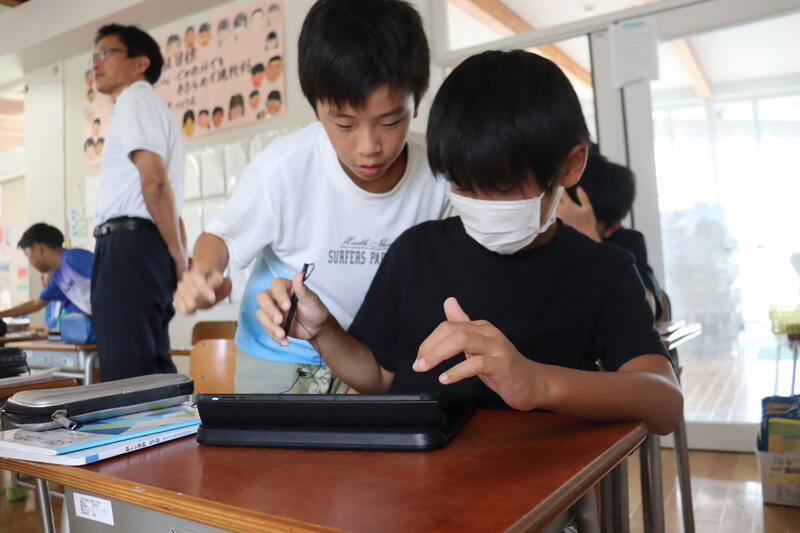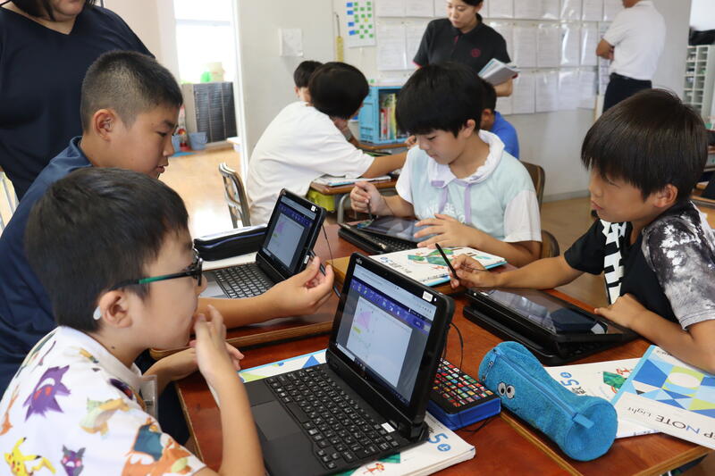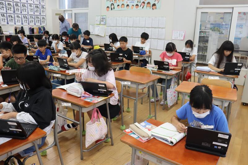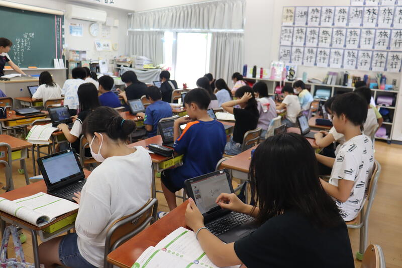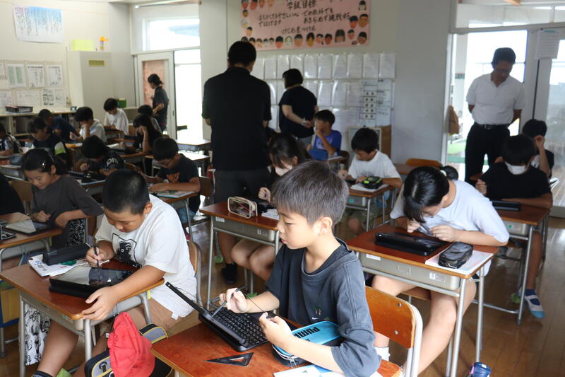 小学6年生は、国語でタブレットを使っていました。使い慣れていて、作業もはやいです。子どもたちの吸収力には驚かされますね。