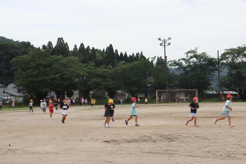 小学生は、「朝ラン」の日でした。1年生が真っ先に運動場に出てきて遊んでいます。元気いっぱいでうれしいです。