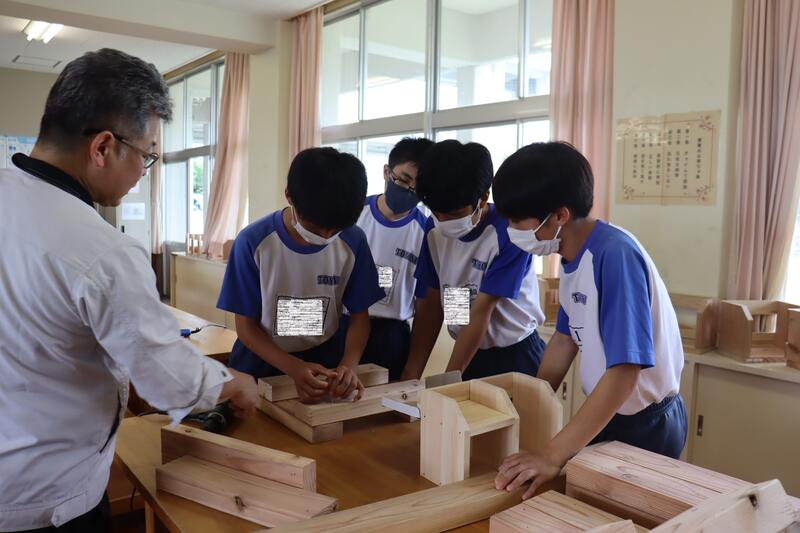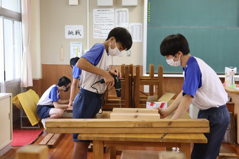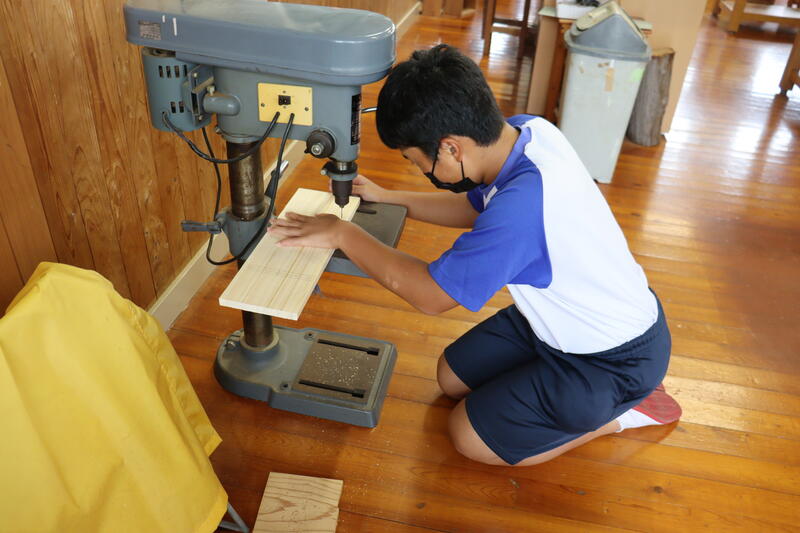 中学1年生は、技術で木工制作の続きに取り組んでいました。だんだん形が見えてきた人、完成に近づいた人も何人かいました!出来上がりが楽しみです。