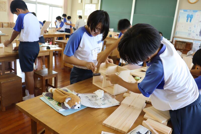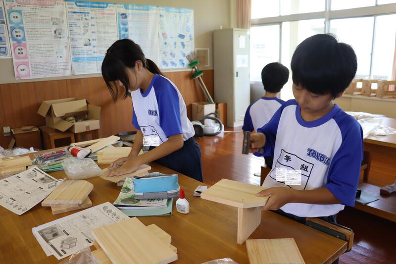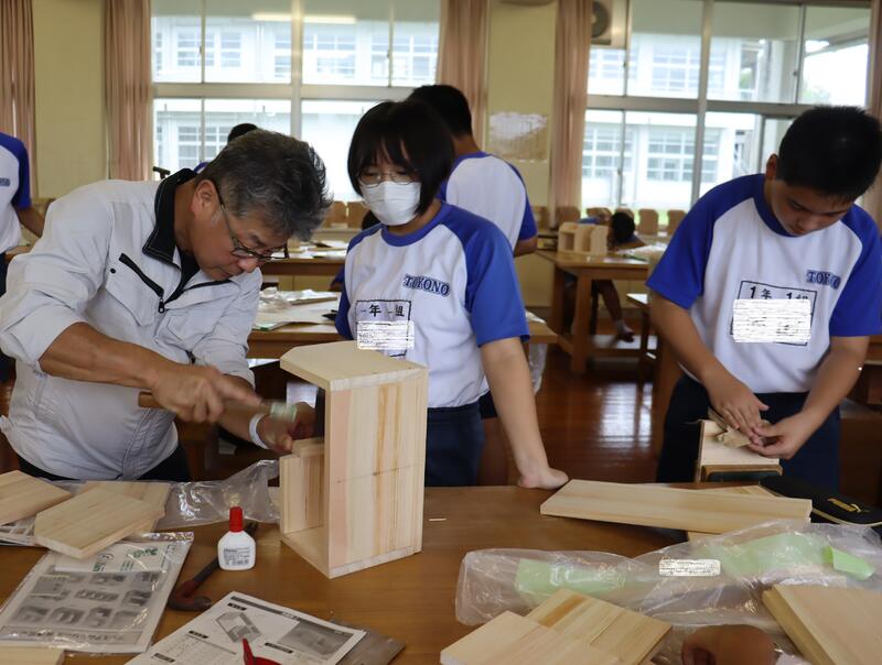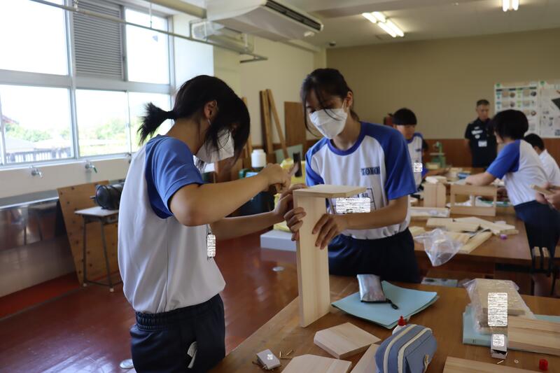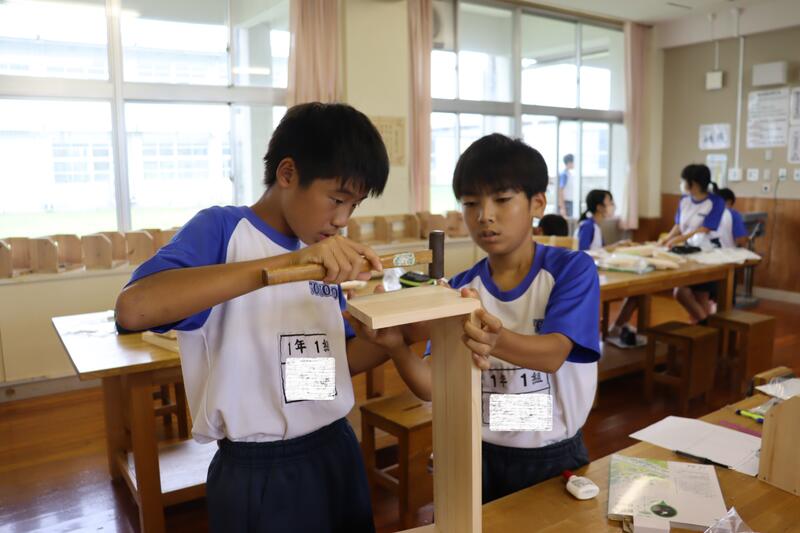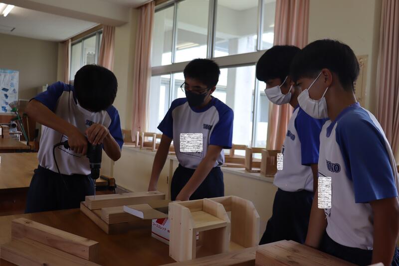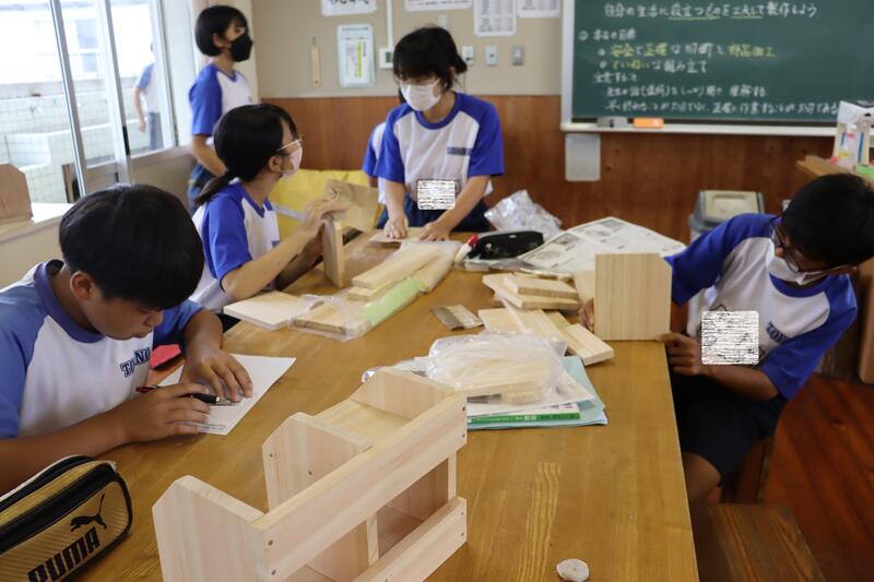 中学1年生は、今日も技術の授業がありました。みんな技術が大好きです。作品も、出来上がりが見えてきました。
