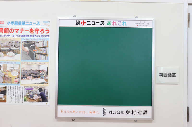 奥村建設様より、朝日写真ニュース社の「朝小ニュースあれこれ」の掲示板を寄贈いただきました。奥村建設様、ありがとうございました!図書室に設置しました。これから、さまざまな学習の場面で活用させていただきます。