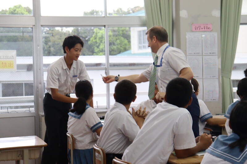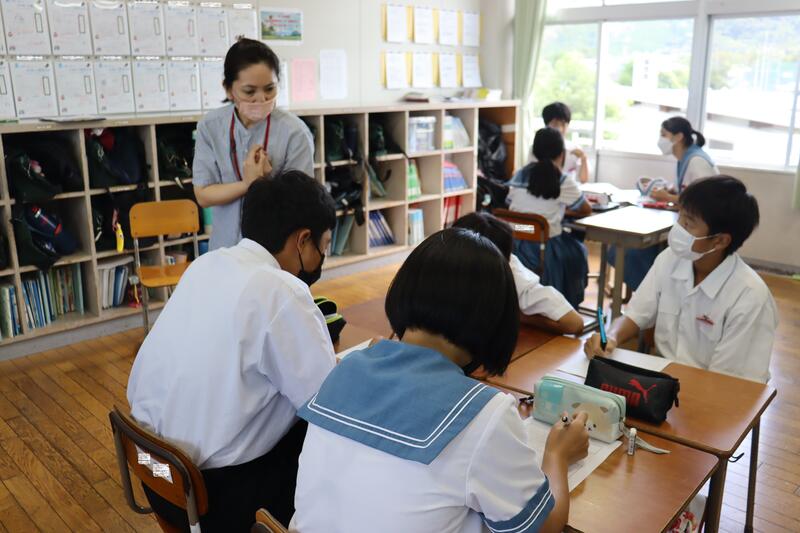 中学2年生の英語の授業です。ALTの先生と一緒に楽しく活動しました。