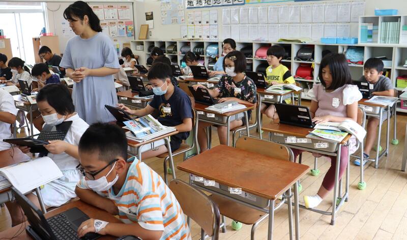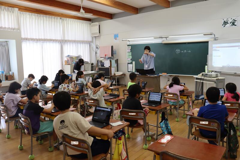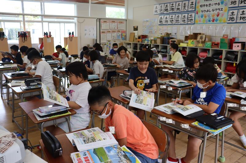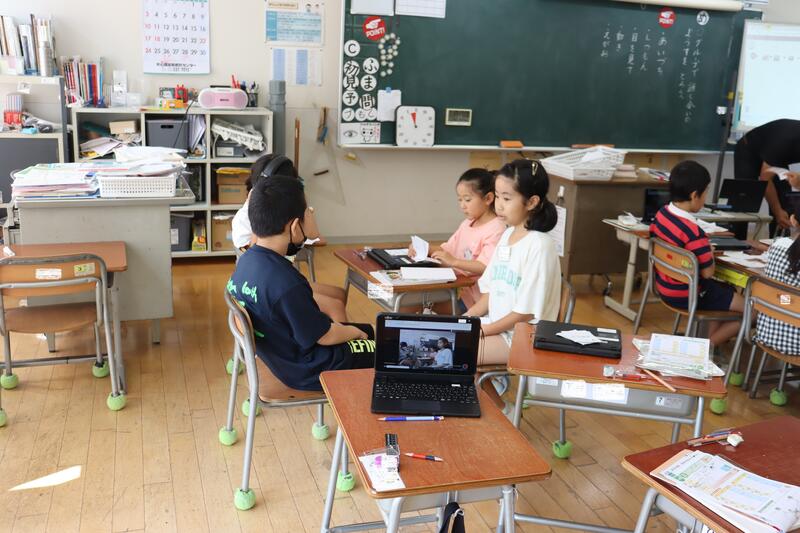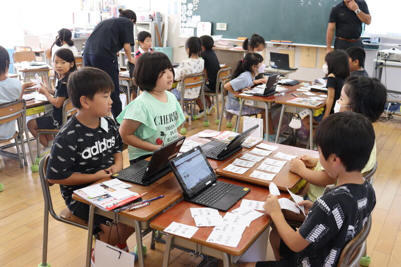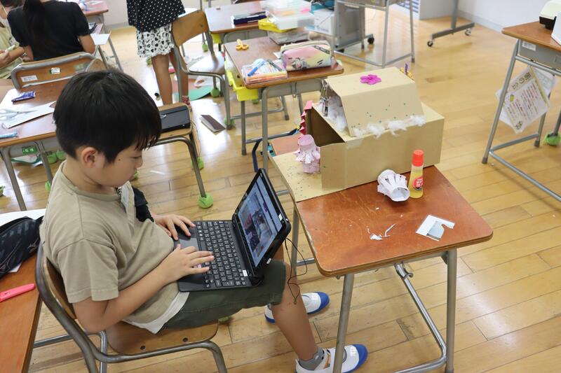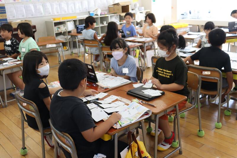 小学4年生は、社会で「清和文楽」について調べていました。アニメ「ワンピース」とコラボレーションした文楽の作品もあり、子どもたちは興味をもって調べていました。