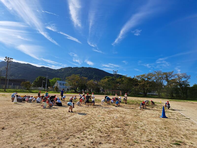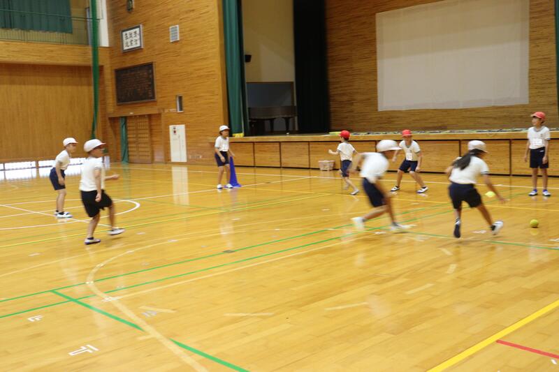 小学4年生は、体育でTボールをしていました。シンプルなルールで、まずはやってみよう!野球クラブに入っている子どもたちが友達に教えながら、プレーの進め方を覚えていました。声掛けがやさしくて、温かい気持ちになりました。