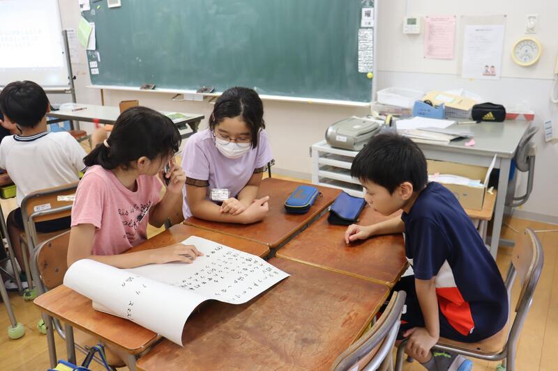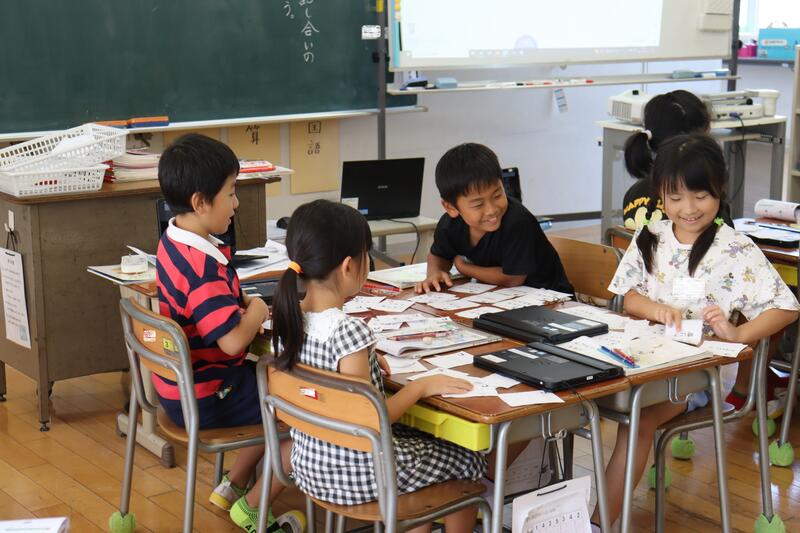 小学2年生は、国語で話し合いの仕方について学習していました。自分たちの話し合いの様子をタブレットPCで撮影し、自分たちの話し方や聞き方について、考えていました。話すときは声の大きさやはっきり話すこと、聞くときは話す人を見て、あいづちをうちながら聞くことが大切だと気付きました。