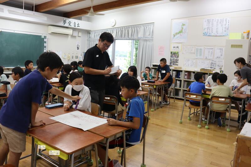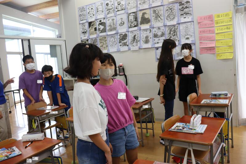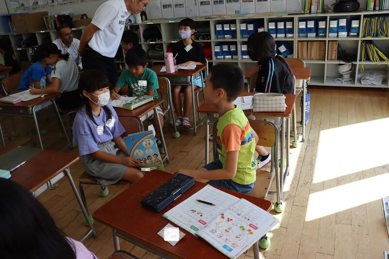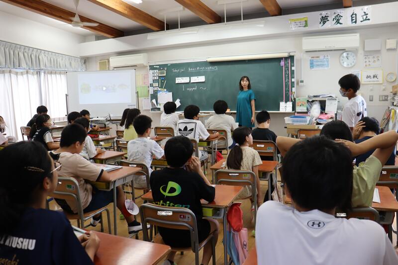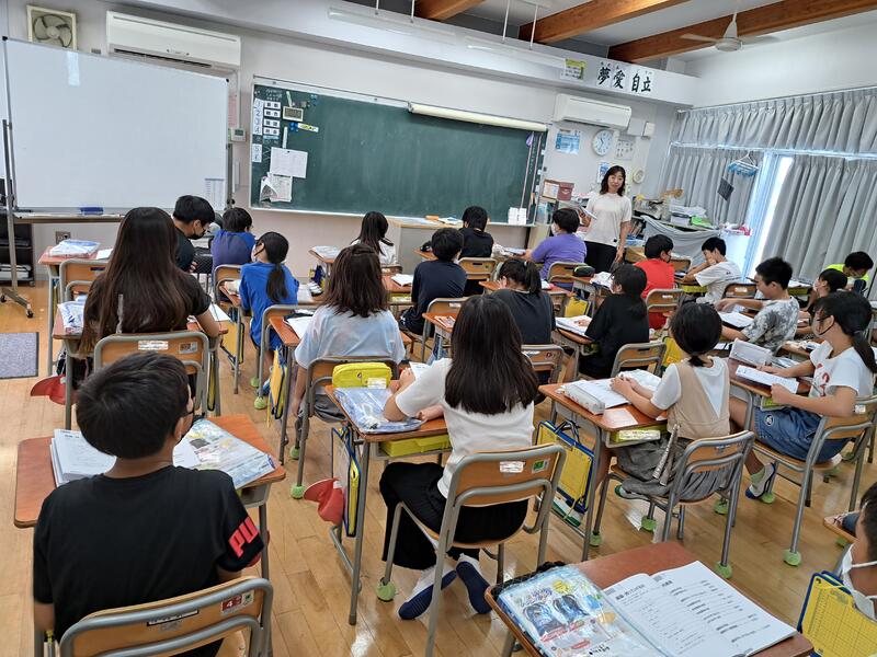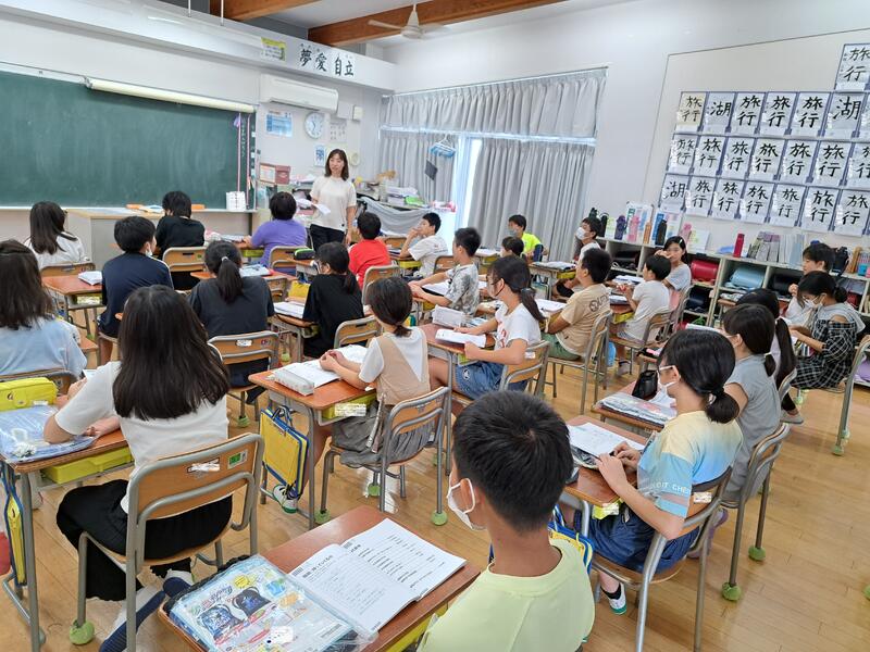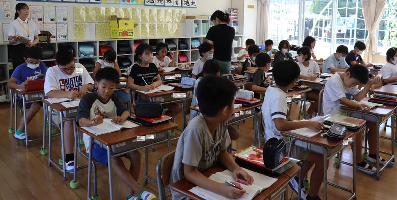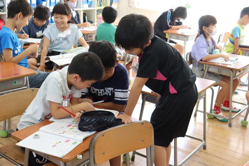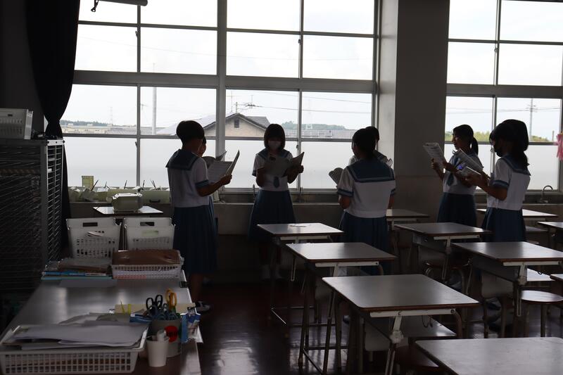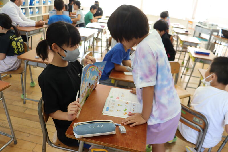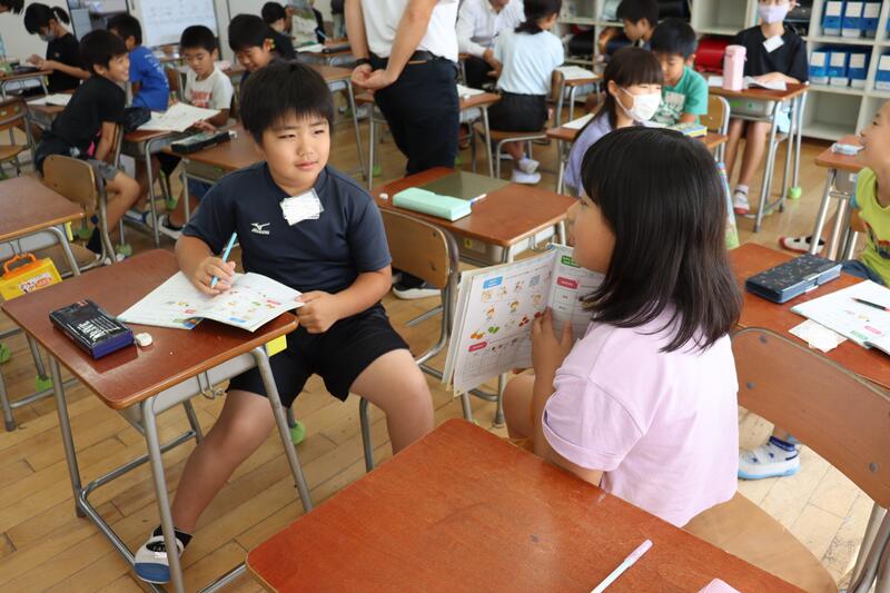 小学6年生は、外国語で「夏休みの思い出」を伝えあっていました。"I went ~.I enjoyed~." 福岡に行ってお買い物を楽しんだこと、長崎でバレーボールを楽しんだこと(九州大会に出場したそうです!)など、たくさんの思い出を聞くことができました。