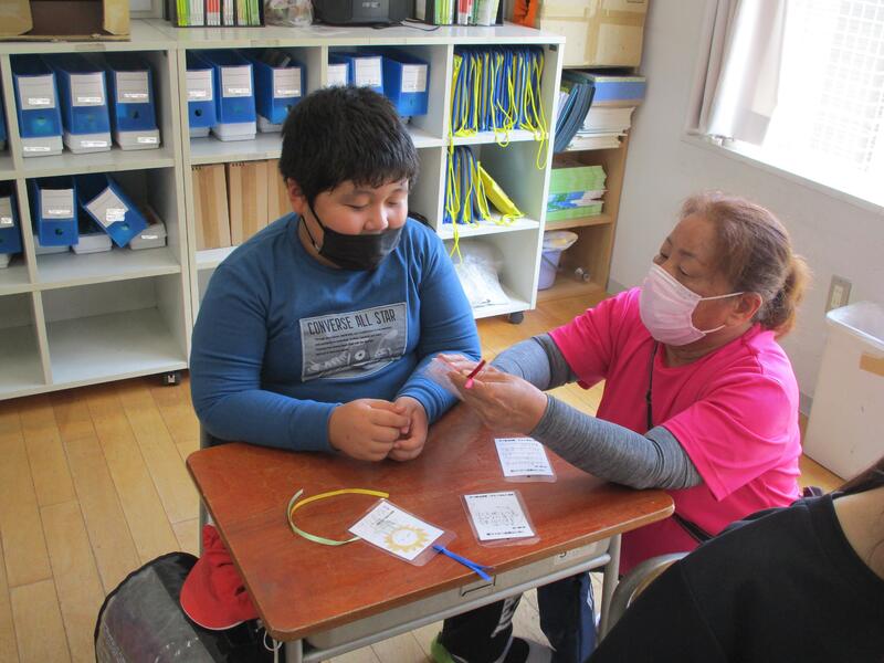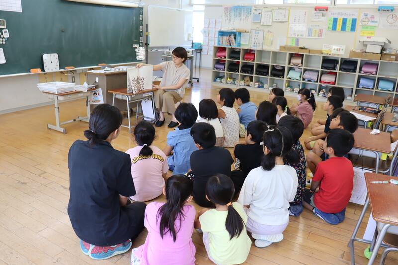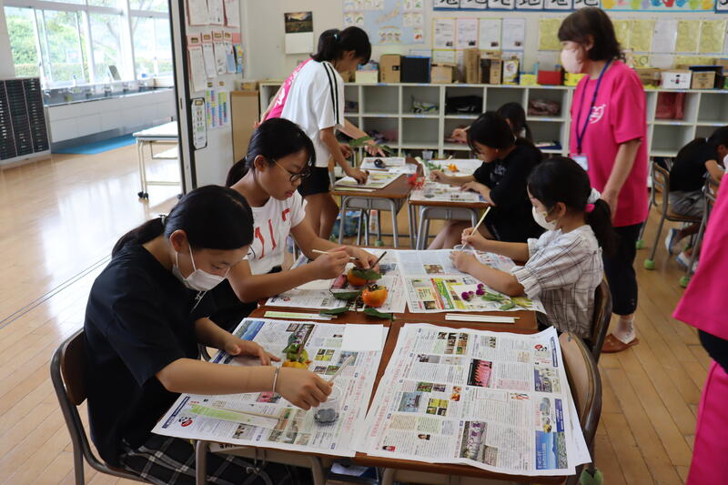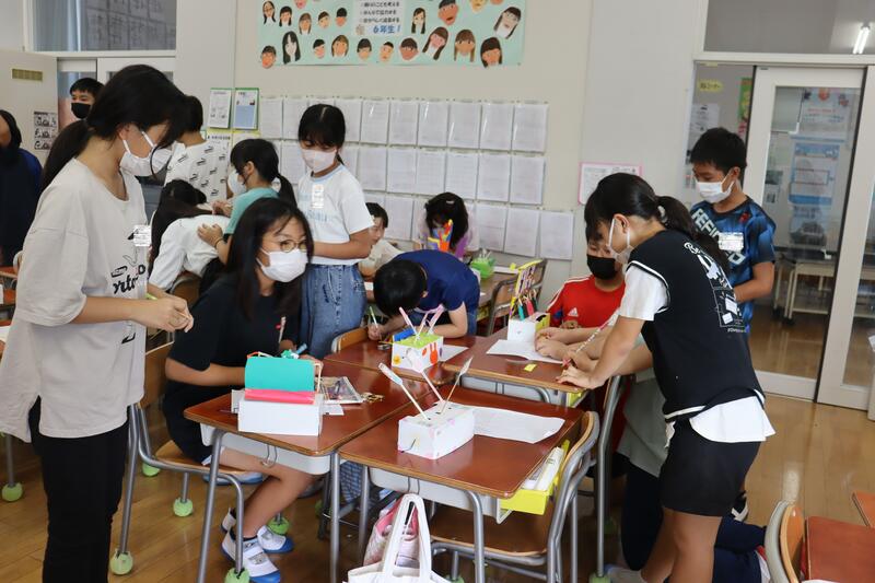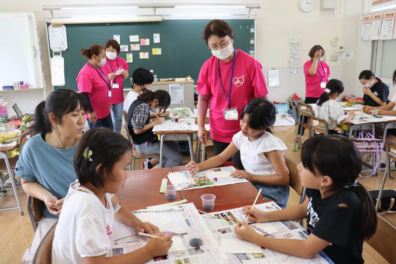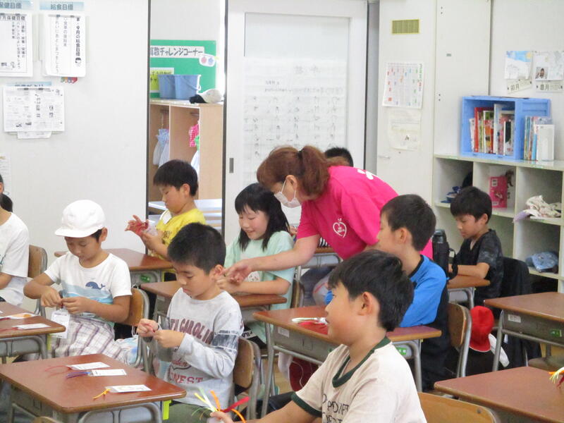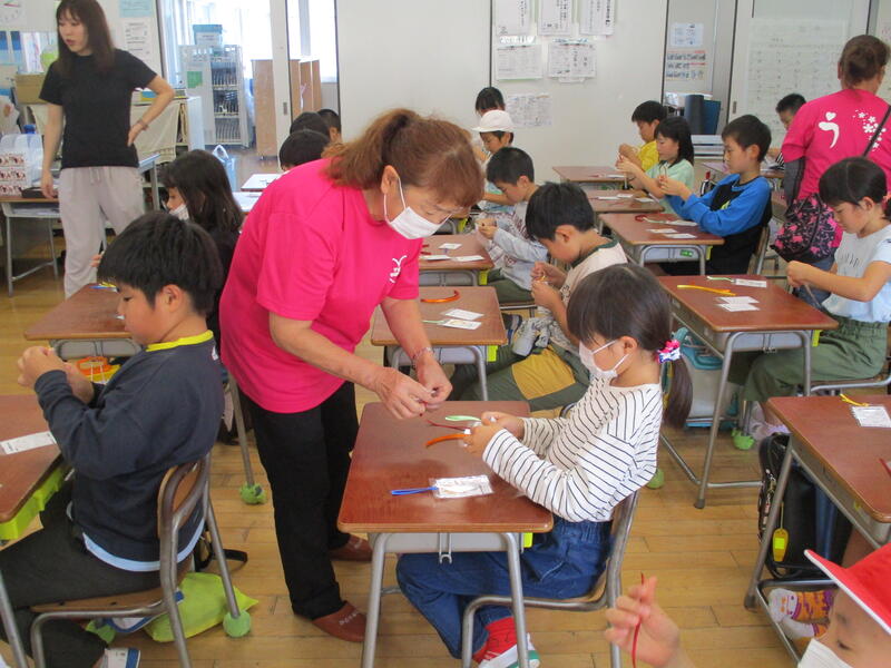 小学3年生は、「うきうきひまわり園」の準備をしていました。今日は、婦人会のみなさんと一緒に、しおりを作ります。婦人会のみなさんが、やさしく丁寧に教えてくださいました!婦人会のみなさん、いつもありがとうございます!
