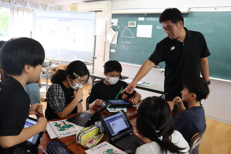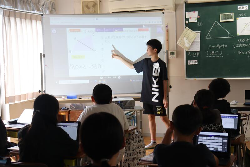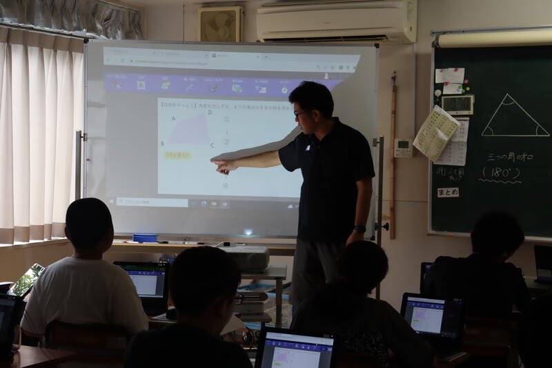 今年度は、校内研修で、ICT機器の有効な活用について全職員で研究し、授業実践を重ねています。今日は、5年生の研究授業がありました。算数で、四角形の内角の和を求めます。いろいろな求め方、考え方が出されました。みんな既習の「三角形の内角の和は180度」を根拠にしていて、さすがでした。考えを交流する場面でも、「なるほど!」「そっか!」と、お互いの意見を認め合いながら話し合いを進める素敵な5年生です。とても素晴らしい授業でした。