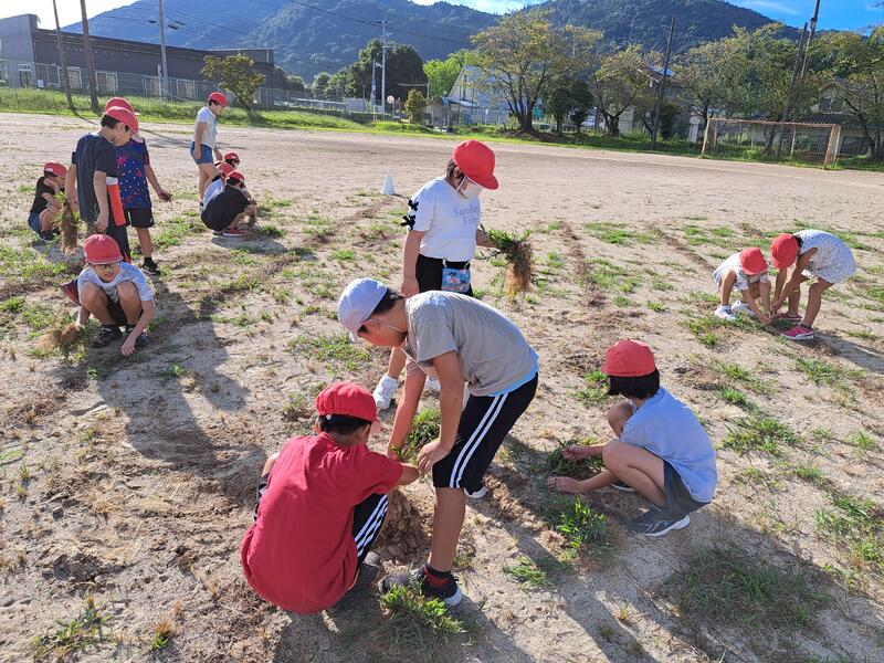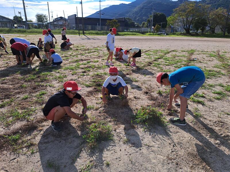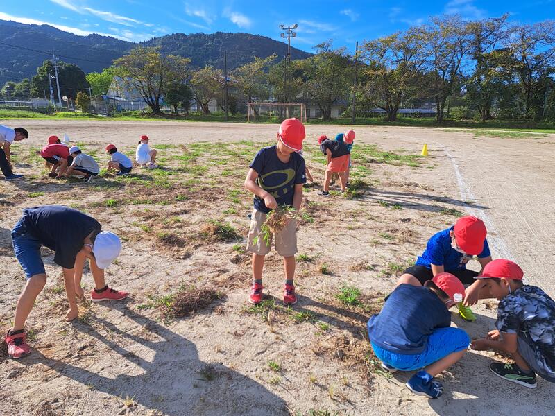 小学生は、前期後半開始から、朝ランのかわりに運動場の草取りをしてくれています。おかげで運動場がかなりすっきりしてきました!みんなありがとう!