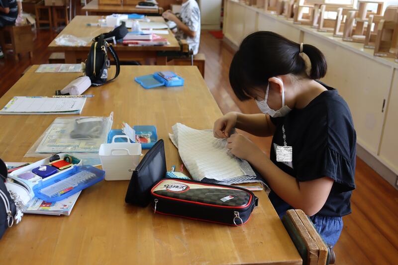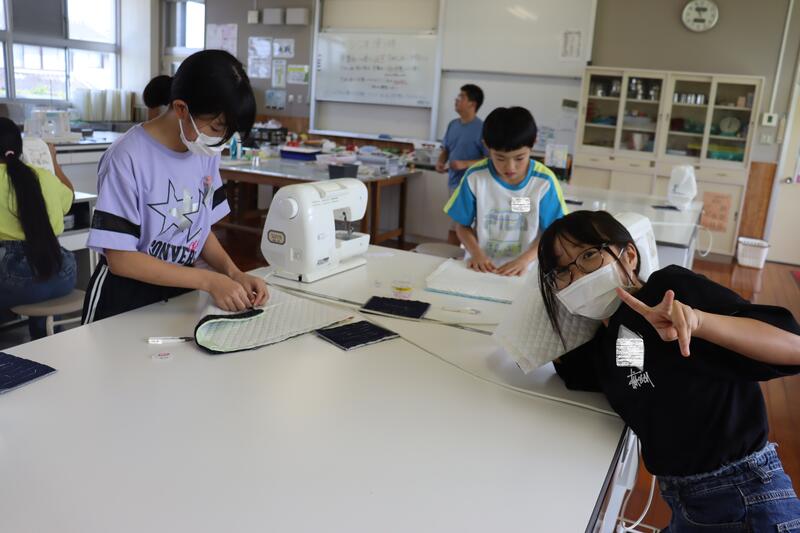 小学6年生は家庭科でナップザックをつくっていました。修学旅行に持っていくのだそうです。修学旅行はなんと来週!楽しみで楽しみで待ちきれません!みんなで教え合いながら作っていました。
