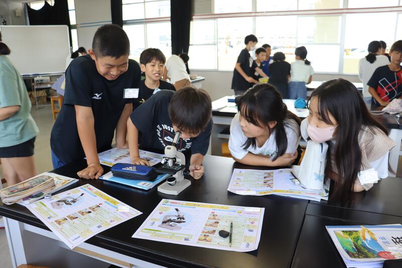 小学5年生は理科で花粉をみていました。光の具合や倍率を調整しています。うまく見えた班からは「おお~」と歓声が上がっていました。