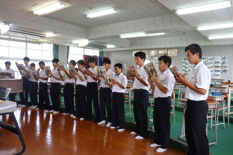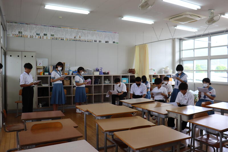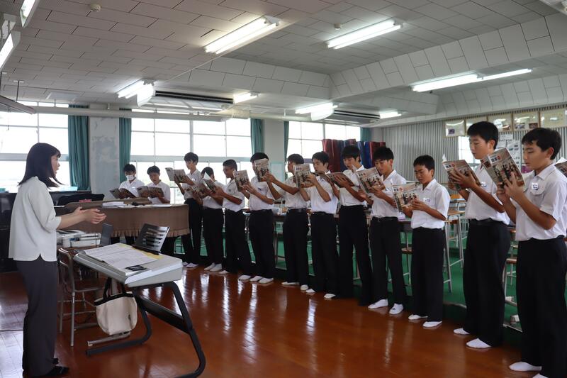 中学生は、合唱コンクールに向けて練習が始まりました。これは2年生の練習の様子です。まだ練習を始めたばかりですが、とても上手で驚きました。アップテンポの曲で、2年生にピッタリです。みんなノリノリです。仕上がりが楽しみです。