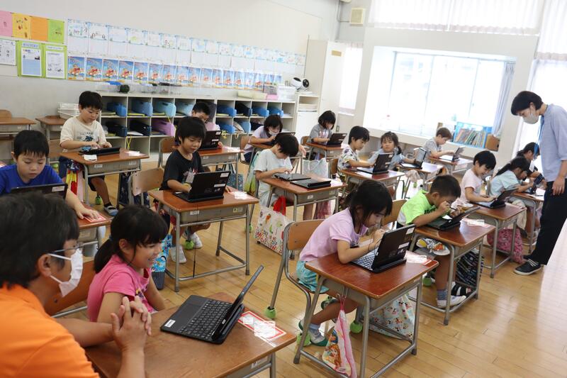 小学1年生のタブレットPC活用の授業です。イラストを拡大・縮小したりコピーしたりしていました。先生の話をしっかり聞いて、丁寧に的確に作業を進めることができていました。素晴らしい!