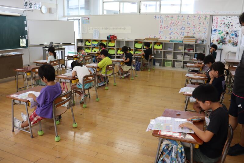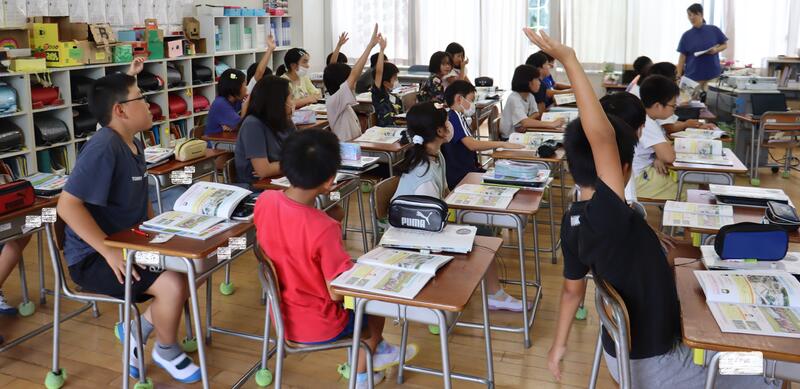 小学4年生は社会の学習をしていました。これから、防災についての学習を始めるようです。意見交換や挙手、発表も活発な4年生、いつも本当に楽しそうに学習に臨んでいます。