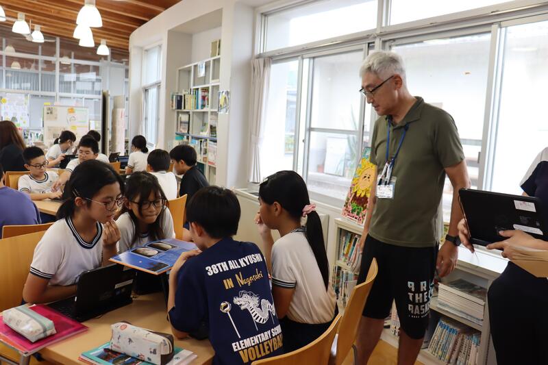 小学6年生は、図書室で理科の学習をしていました。月について調べているようです。インターネットはもちろん、図鑑等も用いながら調べていました。疑問や分かったことを積極的に伝えあっていました。夏休みが終わり、ぐんと大きくなった6年生、とても頼もしいです。
