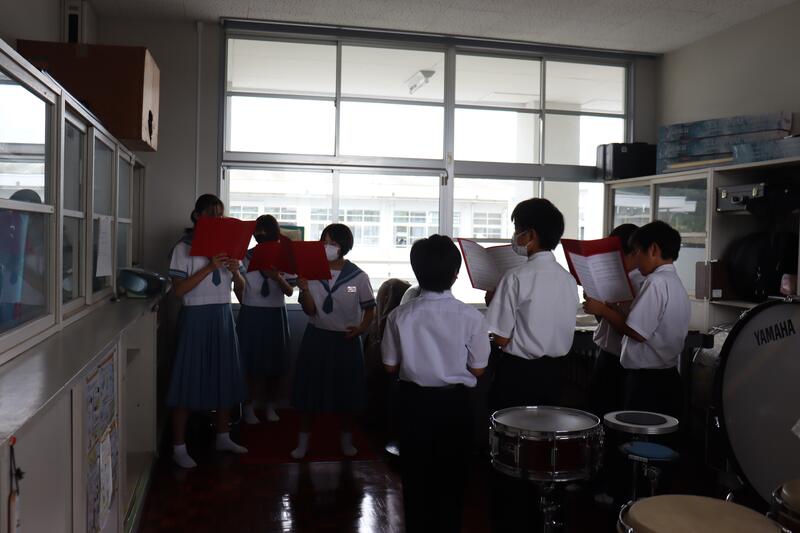 今日は中学1年生が歌っていました!1年生も先輩たちに負けていられません。人数は少ないですが、みんなで声を出し、練習に励んでいました。1年生にぴったりの明るく爽やかな曲です。これからどんどん上手になっていくことでしょう。楽しみです。