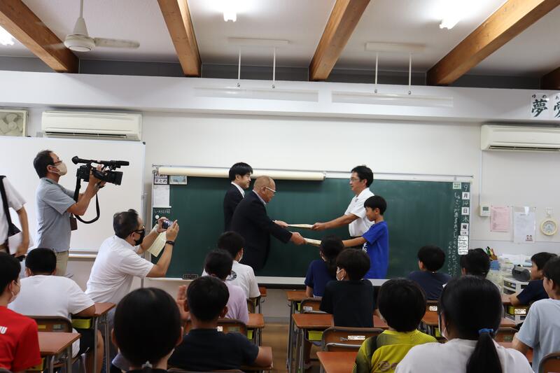 読売新聞西部本社 様より、SDG'sの取組の一環として、出前授業と植樹体験のお話をいただき、本校においては小学5年生が学習させていただくことになりました。今日は、「KODOMO新聞」を寄贈いただきました。読売新聞西部本社のみなさま、ありがとうございました!昼休みにおこなった贈呈式の様子です。