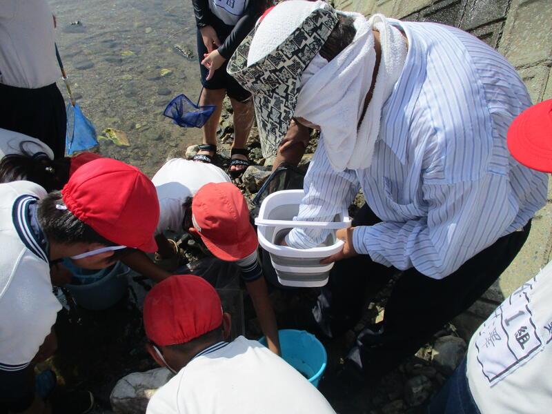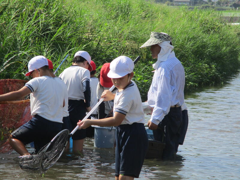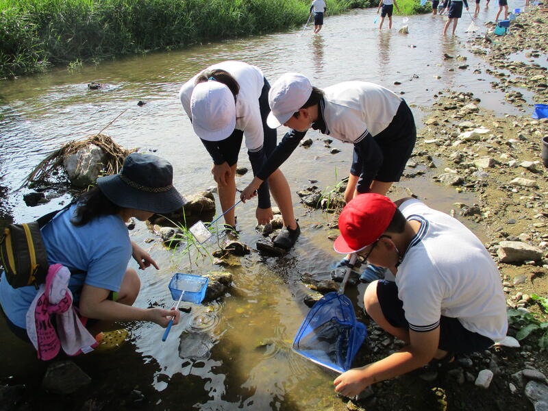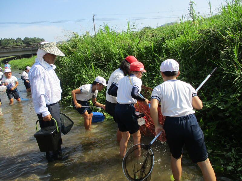 小学4年生は、理科で、近くの川にいる生物を探しに行きました。地域の方にご協力いただいて、生き物のこと、川の流れのこと、防災のことなど、たくさんの視点から学ぶことができました。お忙しい中、ありがとうございました!