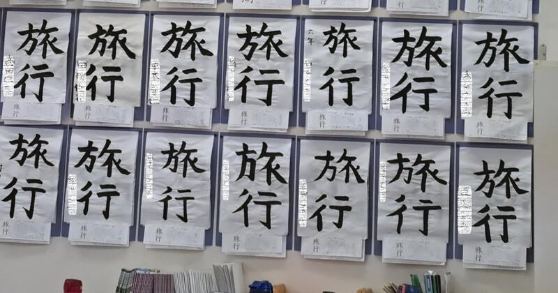 6年生教室に掲示されている習字もなんと「旅行」と書いてありました!