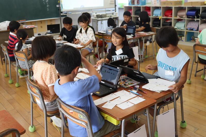 小学4年生は、社会で「清和文楽」について調べていました。アニメ「ワンピース」とコラボレーションした文楽の作品もあり、子どもたちは興味をもって調べていました。