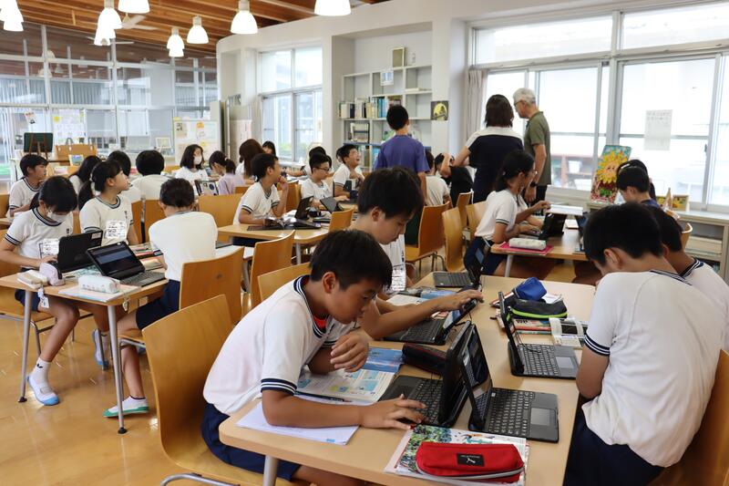 小学6年生は、国語でタブレットを使っていました。使い慣れていて、作業もはやいです。子どもたちの吸収力には驚かされますね。