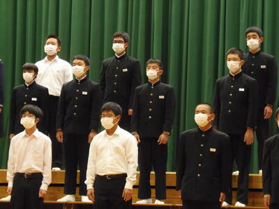 校長先生からは、「成」という字を示され、「為せば成る なさねば成らぬ 何事も 成らぬは人の なさぬなりけり」を例に、今年の目標を絶対にやり遂げるという強い気持ちを持ってほしいと話されました。特に中学3年生が真剣に聞いていました。