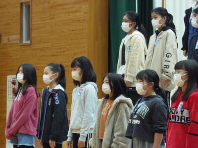 4時間目は、中学校の後期前半終業集会が行われました。小学校同様、持久走駅伝大会、ポップコンテスト、人権、バレー部の大会優勝などの表彰を終業集会の前に行いました。