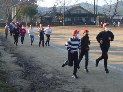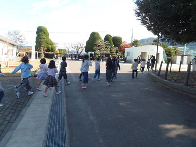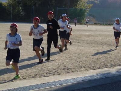 小学1・2年生が、持久走大会の練習をがんばりました。
