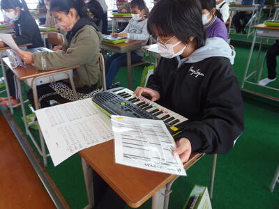 小学1年生は、音楽の授業でした。