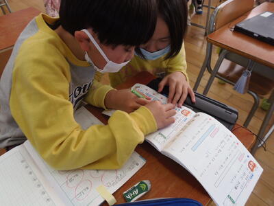 一人学びでの後、友だちと意見交流を行いました。
