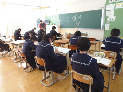 中学校は、3時間テストです。真剣に受けていいました。