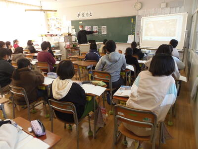 6年生は、社会の授業で中学校の柴田先生が、幕末の出来事について詳しく説明されていました。