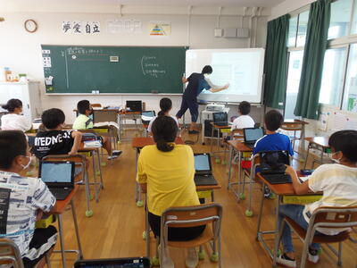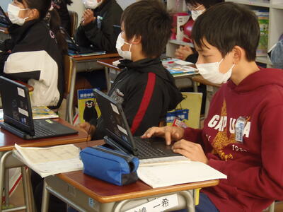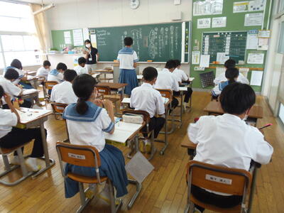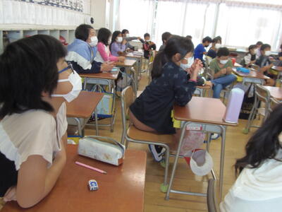 感染防止のため、グループでの共同学習ができませんが、先生方の工夫もあり楽しい授業が展開されていました。