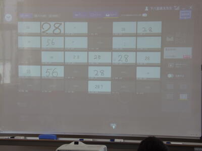 全員の答えが、下八重先生のタブレットに映され、答え合わせを行っていました。