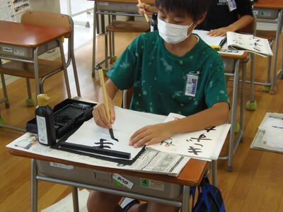 2年生は、書写の時間で、「雲海」という文字を書いていました。カメラを向けても気にせず集中して書いていました。