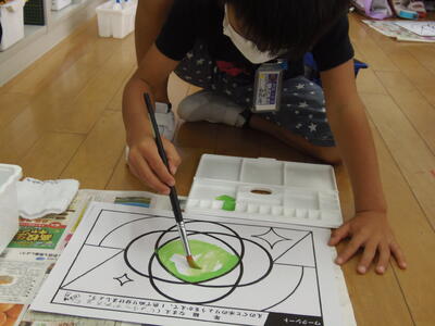 小学1年生は、自分たちで作ったスタンプを使い、絵を仕上げていました。