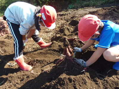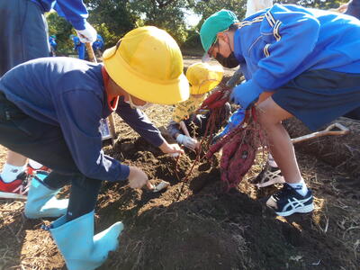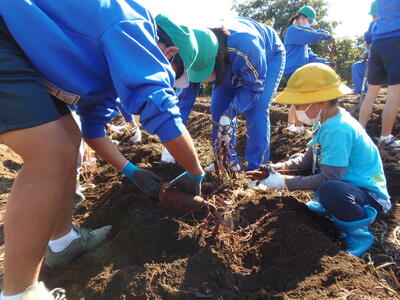 小学1・2年生も到着し、焼き芋づくり体験に挑戦しました。