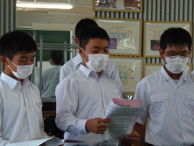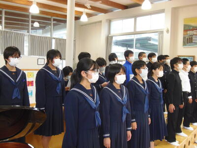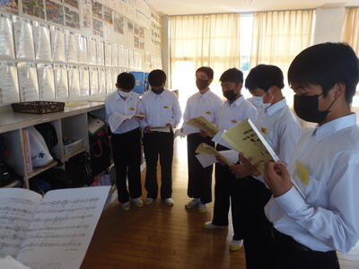 中学3年生の歌の練習の様子です。それぞれのパートに分かれて頑張っていました。