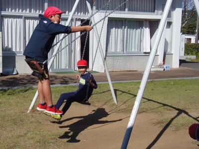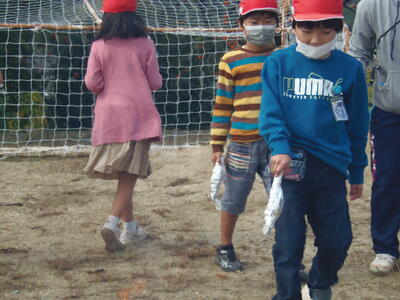 前後しますが、焼き芋が焼きあがるまでの時間、中学1年生は、小学1・2年生と「警泥」(鬼ごっこ)をして楽しませてくれました。