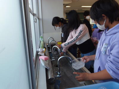 5年生は、理科の実験の後かたずけをしているところにお邪魔しました。