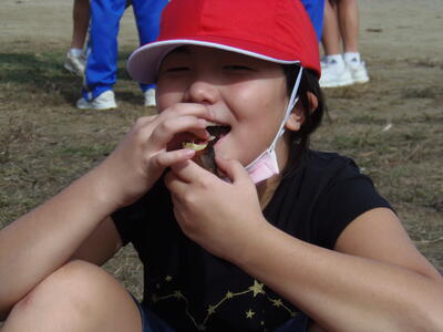 2年生も1個ずつ焼き芋をもらい、作ってくれた中学1年生にお礼を言いました。