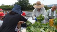 ↓ 畑に着くと3名の地域の方からいもの苗の植え方を学びました。
