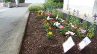 ↓ また、来客用駐車場の花壇に花が植えられています。きれいに咲いています。