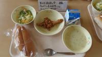 今日の給食は、ミルクパン、ミネストローネ、ツナオムレツ、いんげんとマカロニのサラダ、牛乳です。エネルギーは、小学校646キロカロリー、中学校852キロカロリーです。