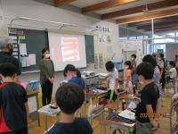 ↓ 小学3年生の総合的な学習の時間の様子です。今日は、豊野ひまわり園実行委員会から里永様、伊藤様、岩山様をお迎えし、「うきうき豊野ひまわり園」のことについて教えていただきました。