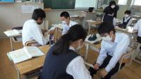 ↓ 4時間目に授業の様子です。中学3年生は、英語の授業です。2人組になって英文の問題を出し合っていました。さすが3年生、受検生として自覚がみられました。
